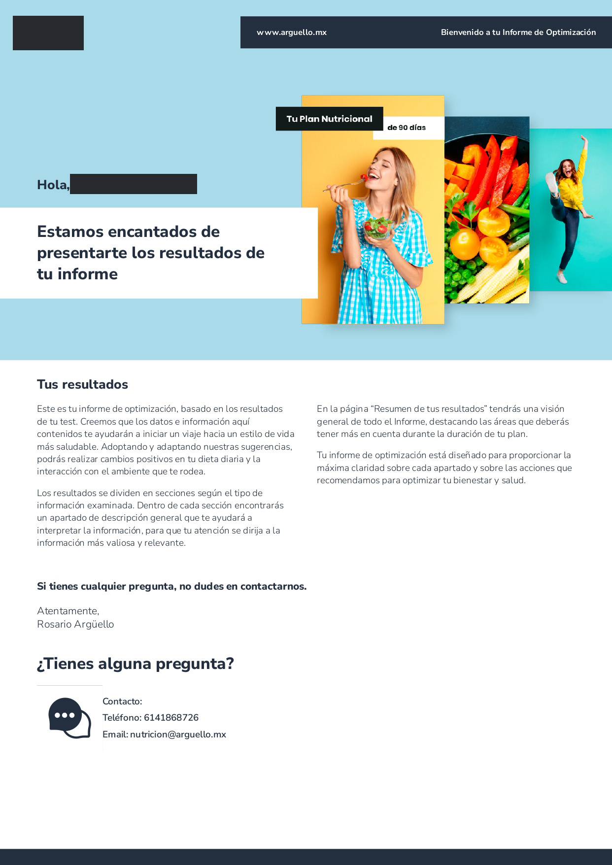 - 4El estudio obtenido contiene información nutricional relevante para la optimización funcional de la persona.